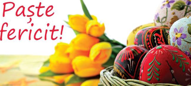 Fie ca Paştele să vă umple inima cu credinţă, speranţă şi iubire, armonie, bucurie şi fericire! Vă dorim ca aceste zile să vă încălzească inima cu bucuria aflării împreună cu cei dragi şi apropiaţi, să aducă bunăstare în familiile voastre, iar culorile calde ale ouălor încondeiate să reverbereze în inima voastră cu cea mai luminoasă speranţă. Vă dorim tuturor bine, prosperitate, sănătate şi binecuvântare cerească.