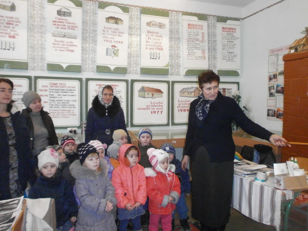 Mă străduiesc întotdeauna să adun materiale legate de istoria satului Cupca, a învățământului, culturii. Mult mi-a ajutat fosta lucrătoare a școlii, Maria Schipor, care a donat obiecte vechi, icoane, flori artificiale. Uneori adună chiar și de prin sat obiecte vechi pentru Muzeul nostru. Meșterița populară, Felicia Ungurean, a donat câteva tablouri pictate pe sticlă, îndeletnicire mai rar întâlnită acum. De asemenea, mai multe lucruri ce prezintă valoare pentru Muzeu ne donează în permanență și doamna Lucica Dușceac, profesoară de limba maternă.