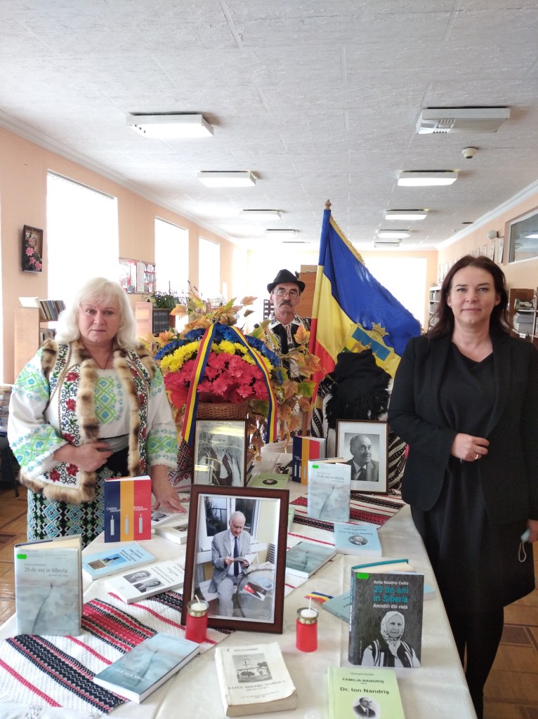 Deși l-a cunoscut numai prin intermediul inimoșilor săi compatrioți, Consulul General al României la Cernăuți, dna Irina Loredana Stănculescu a venit cu pioase sentimente la slujba de pomenire a lui Gheorghe Nandriș, așa cum este prezentă la toate manifestările de respirație națională din această mândră oază românească. Semnificativ se evidenţiază faptul că Excelența sa a avut un schimb călduros de vorbe la telefon cu regretatul în drumul de pelerinaj la Sfânta Mănăstire Voroneț, unde măicuțele au primit ultima carte a cronicarului legendarei familii, scrisă de doctor în ipostaza de căutător al nemuririi sufletului, carte în variantă electronică, pe care Elena Nandriș a scos-o pe hârtie în câteva exemplare. După ce i-am citit și eu incitanta respirație creștină, ”CUNOAȘTEREA DE SINE. De la rațiune la credință”, îmi permit să cred că în aceste 40 de zile de când a adormit întru veșnicie, în drum spre sanctuarul ceresc al lui Dumnezeu sufletul său a poposit la Mahala, pe la Fântâna Lazorenilor, unde înțeleptul străbunic Vasile Lazor a stăruit ca nepoții săi Grigore și Ion să urmeze școli înalte. Iar cele trei chei CREDINȚA, IUBIREA, IERTAREA, de care ne amintește Gheorghe Nandriș în ultima sa carte, îl vor ajuta să deschidă ușa Raiului. Faima Nandrișenilor a ajuns departe în lume, însă numai la Mahala este locul unde se depozitează averea lor spirituală, unde veșnic e vie flacăra memoriei, lucru amintit și de Vasile Răuț, președintele Societății ”Golgota” a românilor din Ucraina. Ziua înălțării la ceruri a sufletului lui Gheorghe Nandriș s-a încununat cu depunerea de flori tricolore din partea Consulului General doamna Irina Loredana Stănculescu și imnuri de proslăvire la bustul martirei Anița Nandriș-Cudla, loc sfânt, altar al sacrificiilor unui neamul ce nu-și trădează rădăcinile.