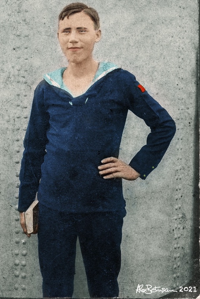 Aşa cum toate poveştile se sfârşesc cu bine, la un final fericit am ajuns şi cu istoria de poveste a bunicului meu, datorită tehnologiilor moderne de astăzi. După postarea fotografiei sale pe Facebook, am primit un mesaj de la un român (Alex Botuşan), plecat de vreo şapte-opt ani în Canada. În România a profesat ziaristica. Îmi scrie că l-a impresionat povestea bunicului Ştefan şi, „cu mijloacele sale modeste” a încercat să adauge un pic de viaţă imaginii sale: „… culorile corespund uniformei austriece din perioada primului război mondial… Am doar o oarecare îndoială în ceea ce priveşte culoarea galoanelor… Fotografia este făcută cel mai probabil chiar pe puntea unei nave, judecând după nituri”. Alex mi-a îmbunătăţit imaginea într-un format bun pentru a fi imprimată pe hârtie. Din succintul schimb de cuvinte pe messenger am avut surpriza să descoperim că avem strămoşi cu acelaşi nume de familie Buşilă (un străbunic de-al său fiind din comuna Şirăuţi, fostul judeţ Hotin, iar o bunică (Bugaianu), născută la Cernăuţi, a reuşit să prindă ultimul vagon în învălmăşeala refugiului cu părinţii în România. Ce rău îmi pare că doar în vis îl văd pe tata, ascultând din lumea umbrelor acest sfârşit de poveste…