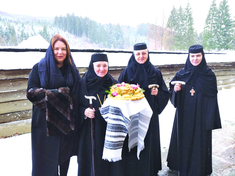 De trei decenii, de când a fost reînființată Sf. Mănăstire, Cuviosul Daniil Sihastrul cheamă și adună închinători la hramul său, sărbătorit și anul acesta la 18 decembrie în frumosul paraclis de lemn al ctitoriei monahale, înălțat în cinstea Sa în 1997. Este cel de-al doilea hram al Sfintei Mănăstiri, conform documentelor încă de la 1557 până la desființarea mănăstirii de către stăpânirea austriacă (anul 1785). O mărturisește și inscripția gravată în aur și argint pe Tetraevanghelul dăruit de mitropolitul Grigorie Roșca la 1550, unde scrie: „Hramul Sfântului Gheorghe și al Părintelui Daniil cel Nou”. Așadar, al doilea hram a fost instituit de mitropolitul Roșca, care se considera ucenic al sihastrului. Împreună cu Consulul General al României la Cernăuți, dna Irina Loredana Stănculescu, și președintele Societății pentru Cultura și Literatura Română în Bucovina „Mihai Eminescu”, poetul Vasile Bâcu, am avut fericirea să mă aflu printre oamenii dragi Mănăstirii, chemați să-l cinstească pe unul din cei mai mari sfinți ai neamului nostru. Cutez să cred că mi-a auzit Sfântul ruga, deschizându-mi calea în aceste timpuri grele pentru trecerea prin vamă. M-am pornit la drum cu poveștile de acasă – poveștile tatei despre Ștefan cel Mare și sfătuitorul său, pustnicul Daniil. Și am ajuns într-o visată poveste, după slujba de priveghere, înspre noapte, pe drum luminat de neaua argintie, găsind în jurul măicuței Irina, cea dintâi stareță, oaspeți așteptați – preoți care aveau să oficieze a doua zi Sfânta Liturghie, Mircea Lețiu, managerul din Satul Mare, care s-a ocupat de construcțiile de pe teritoriul mănăstirii, Aurelia Zmeu, ministru-consilier în Ministerul de Externe al României, Constantin Ciofu, cronicarul evenimentelor pentru portalul Doxologia.ro… Cu brațele larg deschise a bucurie a fost întâmpinată de obștea monahală Excelența sa Irina Loredana Stănculescu, care părea că a cules toate florile dalbe ale pământului Bucovinei, pentru a le închina măicuței proinstarețe Irina Pântescu și stareței dr. Gabriela Platon.