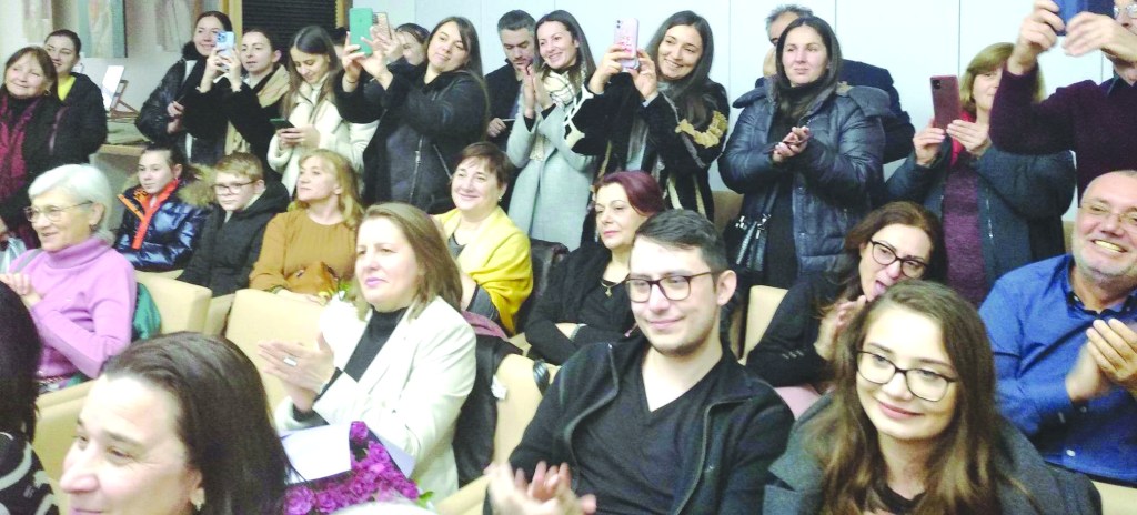 Mișcătoare, tulburătoare, înlăcrimate s-au revărsat cuvintele Elenei Tărâțeanu, soția regretatului poet, compatriotului Vasile Tărâțeanu, căruia îi simțim atât de acut lipsa. Și dacă am ajuns la lacrimi, ce n-au lipsit până-n seară (lacrimi de bucurie, lacrimi de durere), voi încheia cu filmulețul (video-clipul) cu care am început manifestarea, dar am evitat până acum să amintesc. Nu că n-ar fi fost reușit, însă i-a răscolit sărbătoritei noastre, doamnei Irina Loredana Stănculescu, dar și celorlalte firi sensibile emoții înrourate de lacrimi. Am dorit, împreună cu regizoarea de la TV regională, Iulia Toderean, membră a Societății „Doamnele Române”, să cuprindem într-un text, sonorizat de vocea de cântăreață și compozitoare a Carolinei Jitaru, activitatea diplomatică, atașamentul față de comunitatea noastră, a doamnei Irina Loredana Stănculescu și a echipei sale de la Consulatul General al României la Cernăuți. Nu vom aprecia noi, ca realizatoare, acest modest cadou și chiar am fi simțit o părere de rău pentru lacrimile ce le-am provocat, dacă nu auzeam mărturisirea sărbătoritei: „Nu pot să nu plâng alături de dumneavoastră. Îi mulțumesc lui Dumnezeu că mi-a pus pe umeri această sarcină. Meritați toată atenția României și a statului român…”. Cuvinte de mulțumire a avut doamna jubiliară pentru fiecare – jurnaliști, profesori, artiști, oameni simpli, dar mai ales tinerele vlăstare, dăruindu-ne „din armonia inimii cu dor” dulci melancolii, în duet cu vocea Carolinei. Așa se întâmplă cu oricine vine pe mai mult timp la noi. Cei care vin nu doar să ne vadă, să ne judece sau să ne laude, ci să pună umărul la promovarea spiritului de unitate și identitate națională, să ne ajute la păstrarea valorilor, să zidească poduri între neamuri, aici rămân cu inima, cu lacrima, cu dorul…