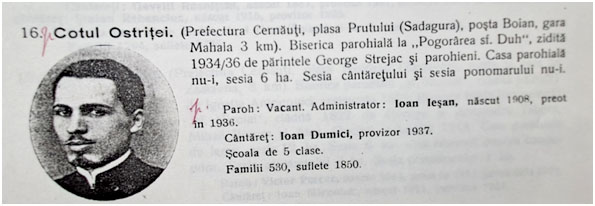Originar din Roşa Cernăuţi, această puternică citadelă a românismului, părintele Gheorghe Strejac a condus ani de-a rândul Parohia Sucevei şi apoi un lung şir de ani Parohia Mahala cu comunele Buda şi Cotul Ostriţei. Aici, în Mahala, Părintele Strejac a activat cu o inepuizabilă energie, pe care a cheltuit-o cu largheţă, în îndeplinirea înaltei misiuni ce i se încredinţase. Cu temperamentul său, sever de multe ori, a reuşit ca, într-o parohie unde după război respectul faţă de biserică şi faţă de bunele rânduieli să fie în suferinţă, să atragă lumea spre biserică, s-o disciplineze şi prin acţiunea lui să contribuie la moralizarea ei. Nu este deci nicio mirare, că acest om la vârsta de 74 de ani, vârstă la care cei mai mulţi se odihnesc, a avut curajul să înceapă o biserică nouă, s-o termine şi să aibă şi fericirea să o sfinţească. Acea sfântă zi de la sfârşitul verii acesteia când în mijlocul a mii de credincioşi de pe Valea Prutului, Î. P. S. Mitropolit Visarion a sfinţit falnica biserică din Cotul Ostriţei, a fost cred cea mai fericită zi din viaţa Părintelui Strejac.