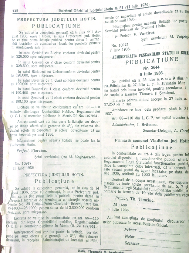 Io Ştefan Voevod cu mila lui Dumnezeu Domnu ţării Moldovei. Iată a venit înaintea noastră şi înaintea tuturor a lor noştri boiari a mari şi mici slugile noastre Ştefan biv medelnicier şi fratele lui Gavril şi Alexsandru ficiorii lui Vasile Brăescul de a lor bună voe de nimeni siliţi nici asupriţi şi au văndut a lor dreaptă ocină şi moşie jumătate sat din Dumeni pe apa Prutului în ţinutu Hotin ce este a lor acea ocină de la tatăl lor Vasile Brăescul; acea au văndut-o ei boiarinului nostru Bucioc biv vel sulgiar pentru 200 lei bani gata din vatra de sat şi din cîmp şi din apă şi tot venitul şi s’a sculat boerinul nostru Bucioc şi a plătit acei bani 200 lei în mînile lui Ştefan şi a fraţilor Gavril şi Alexsandru fiii lui Vasile Brăescul dinaintea noastră şi dinaintea a lor noştri boeri. Pentru acestea ca săi fie lui dreaptă ocină şi cumpărătură şi de la noi uric şi întăritură cu toate venitrile; şi nimene altul sâ nu sâ amestice. Insuşi Domnul a arătat. În Iaşi la anul 7168 Febr. 4 zile. Corlat Racoviţ Cehan vel logofăt a iscălit.