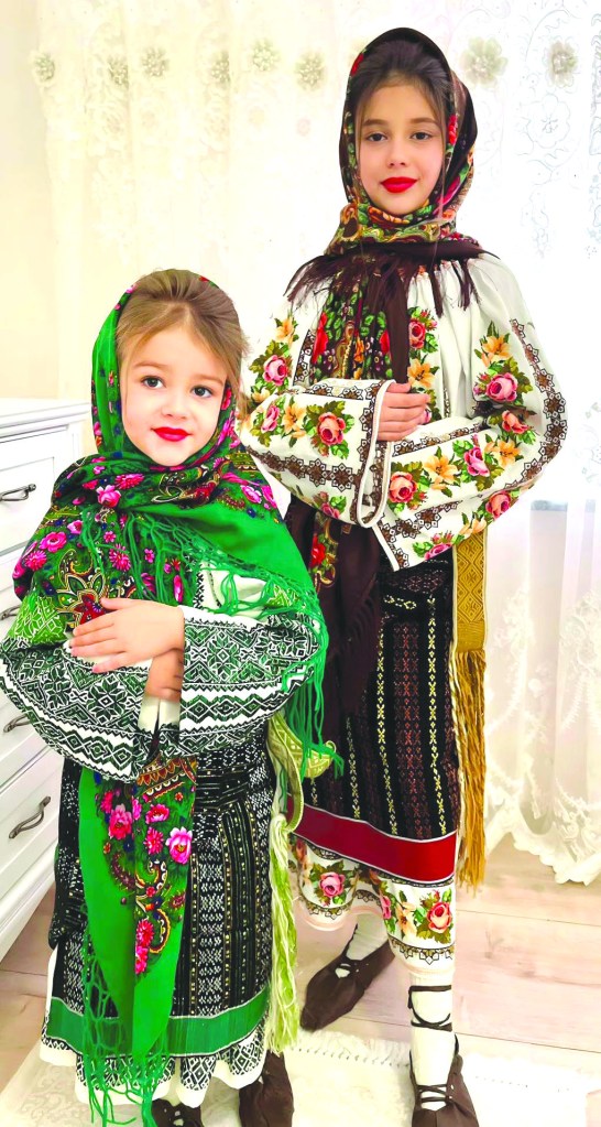 În ziua întâlnirii noastre, însă, toți ai casei erau liniștiți, negrăbiți, bucuroși de micii colindători. Odată cu lăsarea întunericului s-au întors de pe drumul luminat al colindării, cu microfonul în mână și trăistuțele pe umăr, surioarele Carina și Emanuela, îmbrăcate în mândrețea costumului cusut și țesut de bunica Catrina. Au mai cântat o dată în casă, sub portretul bunicilor care le admirau de aproape, gata să le plătească a doua oară. Mămica Elena le-a legat basmalele după moda „a la Stănești”, frățiorul se zbânțuia prin preajmă, fudul că a primit și el „plata”, pe seama surioarelor, fără să-și pună glasul la cântat. În pacea casei și lumina din suflete Hristos se năștea și se înălța!