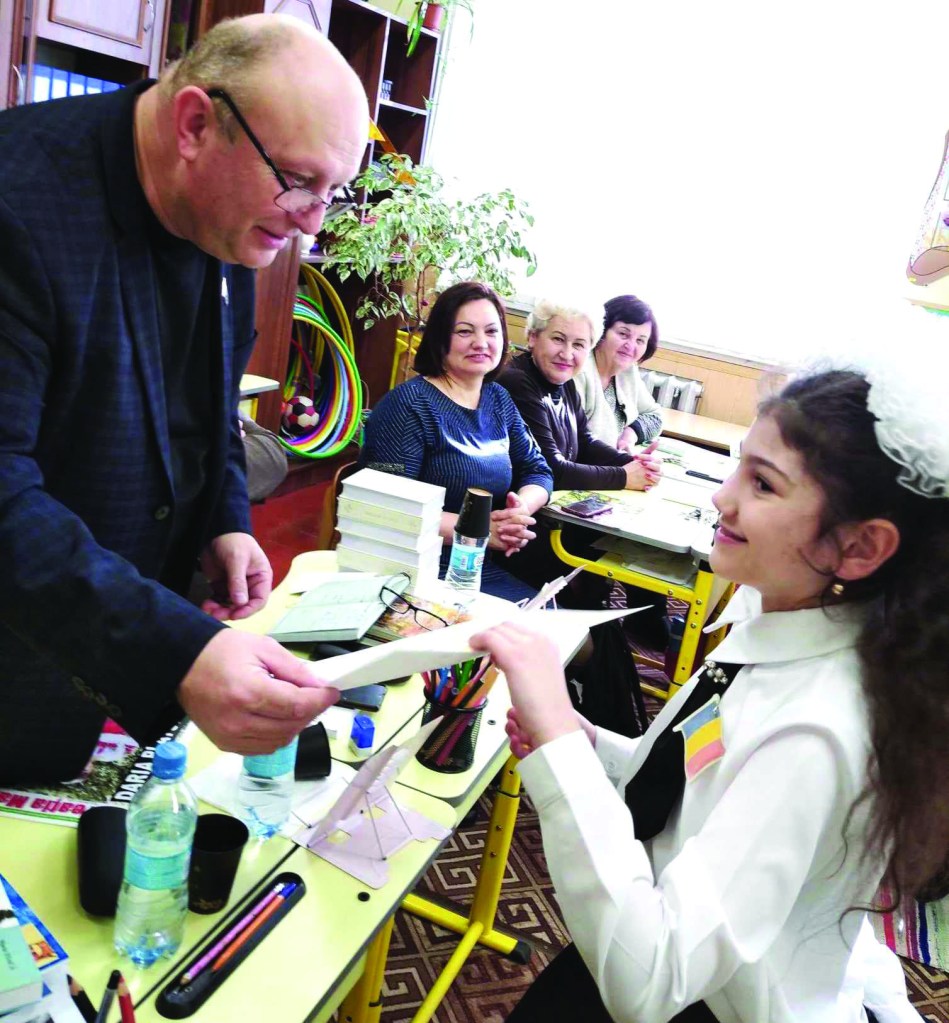 De parcă nici n-am fi la început de Făurar, o dimineață cu soare fără de dinți și vântuleț de primăvară ne zbura iute ca gândul spre Pătrăuții de Sus. Intuiam că vom avea o zi ca-n povești, pentru că mergeam să citim împreună cu copii de la liceele cu predarea în limba română din Pătrăuții de Sus și Igești. Și ne mai licărea în suflete o tăinuită bucurie, sperând să ne întâlnim și cu copilăria noastră dintr-un secol fără smartphoane, tablete, laptopuri și alte minuni ale tehnologiilor performante. Așa trebuia să fie, căci, în calitate de oameni ai scrisului, au primit invitația să consemnăm Ziua Internațională a cititului împreună, în mijlocul unor copii cuprinși în activitățile Societăților pentru cultură și lectură din cele două localități vecine. După cum ne ducea drumul, ne-am oprit mai întâi la doamna directoare Inna Bahnean a Liceului nr. 1, Pătrăuții de Sus. Am găsit-o bucuroasă să-i întâmpine pe poeții Nicolae Șapcă și Vasile Bâcu, cu brațele pline de cărți și reviste. Înainte de a intra în sala ingenios amenajată pentru lectură, ne-am apropiat de placa în memoria fostului absolvent al școlii, Andrei Dragomir, căzut în luptele pentru apărarea Ucrainei la 14 august anul trecut.