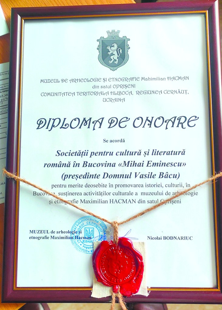 Bineînțeles, nu toți doritorii au reușit să treacă în acea zi granița, de aceea, la inițiativa dlui Nicolae Bodnariuc, directorul Muzeului de Arheologie și Etnografie „Maximilian Hacman” din Oprișeni, membru în conducerea Societății pentru Literatura și Cultura Română în Bucovina „Mihai Eminescu” din regiunea Cernăuți, în incinta Palatului Național al Românilor din centrul orașului Cernăuți a fost organizat un lectoriu, o expoziție foto-documentară din colecția Muzeului „Maximilian Hacman”. Chiar de la bun început ținem să menționăm că oprișenenii s-au pregătit ca niște gazde adevărate de eveniment, venind într-o frumoasă echipă din care, în afară de domnul director, au făcut parte dl Nicolae Popovici, starostele satului, profesorii Ion Pahon, un pasionat artist fotograf și colecționar – propagator al valorilor istorice și culturale ale satului natal, Vasile Pițul și Constantin Aodăiței, care au educat multe generații de elevi, precum și veteranul Operațiunii antiteroriste din estul Ucrainei, Gheorghe Bezușco.