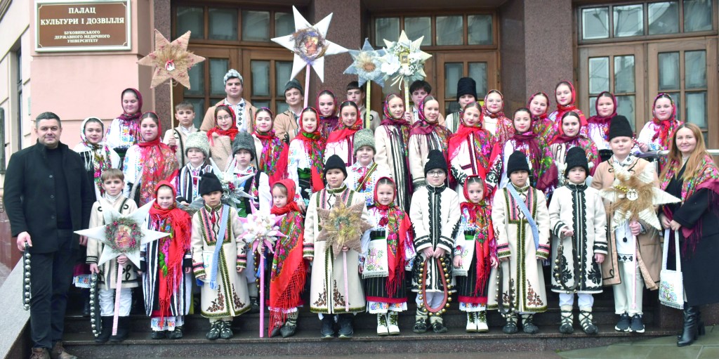 Mai sunt câteva zile și în satele noastre, pe la uși, pe la ferestre, vor răsuna colinde, cerul se va lumina de la stelele purtate de vestitorii Nașterii lui Hristos, de la cântările de proslăvire a Fiului Sfânt și Preacuratei Născătoare. Dar mai întâi, așa cum se întâmplă de vreo trei decenii, datina i-a adunat pe purtătorii minunatei vești acolo unde bate inima comunității românești, la Cernăuți. Fiind prezentă la toate edițiile de până acum ale Festivalului „Florile Dalbe”, ar trebui să mă bucur că vine și la noi Crăciunul să ne aline nesfârșitele dureri din rănile războiului, aducând speranța că în casele noastre va înflori zâmbetul Sfintei Fecioare și se va revărsa mila Domnului peste apusele fericiri. Dar bucuria, ca la orice sărbătoare, a venit înlăcrimată de tăcerea momentului de reculegere pentru luptătorii căzuți pe fronturile odiosului război și conaționalii plecați la ceruri, printre care și tânărul „moș Crăciun”, poetul Gheorghe Ungureanu, unul din permanenții organizatori ai sărbătorilor Societății pentru Cultura și Literatura Română „Mihai Eminescu”. Oricum, în duminica de 21 decembrie, zi cu cea mai scurtă perioadă de lumină și cea mai lungă noapte, prin întunericul ce ne apasă a luminat Măria Sa Tradiția Românească, pe care nici o forță a răului nu poate s-o doboare. Înainte de a-i porni pe colindători la drum, gazda evenimentului, Vasile Bâcu, președintele SCLR „Mihai Eminescu”, a mulțumit oamenilor de bine care l-au ajutat – Departamentului de Cultură al AMR Cernăuți, antreprenorului Mihai Tănasă din Herța, soților Maria Calancea și Claudiu-Vlad Lehaci, care au adus pentru micii colindători minunate cărți, donație a Editurii „Portocala albastră”, București. În colecta anunțată în cadrul festivalului, 4 mii grivne pentru ajutorarea copiilor orfani de război a donat Societatea Scriitorilor fără Frontiere, Iași. Ca întotdeauna, au pus umărul la pregătirile pentru primirea sutelor de colindători vicepreședintele Societății, Nicolae Șapcă, membrii prezidiului, Adrian Medvedi, Mihai Gherman, tânărul activist Vladimir Acatrini, dar mai ales cei mai apropiați – profesoara Ancuța Bâcu, autoarea scenariului, prezentat cu măiestrie actoricească de tandemul tinerilor profesori de română, Marilena Cârciu – Cătălin Șcerbaniuc, nepoțica Solomia Bicer, care împreună cu colegul Efrem Mihalcean și-au jucat rolul de gospodari primitori, împărțind tuturor „plata” în dulciuri. Copiilor purtători de Ler și Dalbe Flori le-a insuflat curaj de a deschide mai îndrăzneț portița colindelor mesajul Consulului General al României la Cernăuți, Irina Loredana Stănculescu, prezentă împreună cu consulul Cristian-Toma Dacica. Ambii sunt bine cunoscuți prin susținerea învățământului în limba română și contribuția la înzestrarea cu tehnică modernă a școlilor noastre.